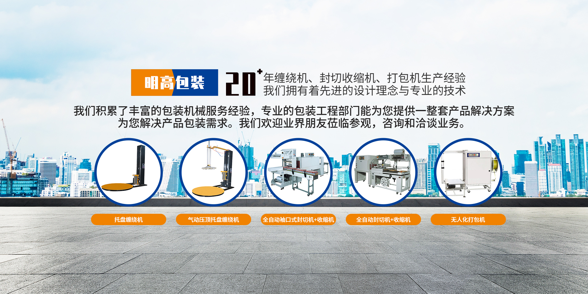 主營纏繞機、封切收縮機、自動打包機、封箱機等包裝機械的設計、制造。